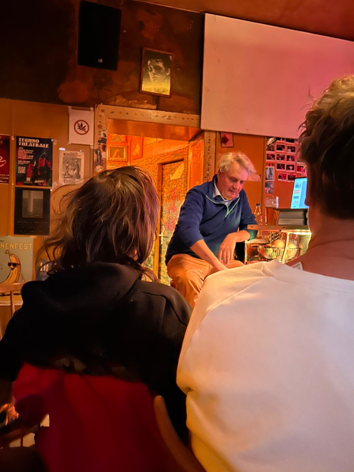 Ich vergaß, vorab hier einen Hinweis zu platzieren. Also reiche ich das Ergebnis einer Lesung zum Arbeitersport nach, die ich am 17.12. in der Kreuzberger Mysliwska-Bar hielt. Das Foto deutet auf geschickte und leicht manipulierende Weise an, es wäre voll gewesen. War’s aber nicht.
