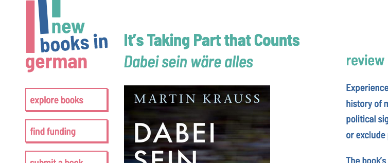 Die erste Rezension meines Buches ist eine englischsprachige, erschienen auf der Website „New Books in German“.