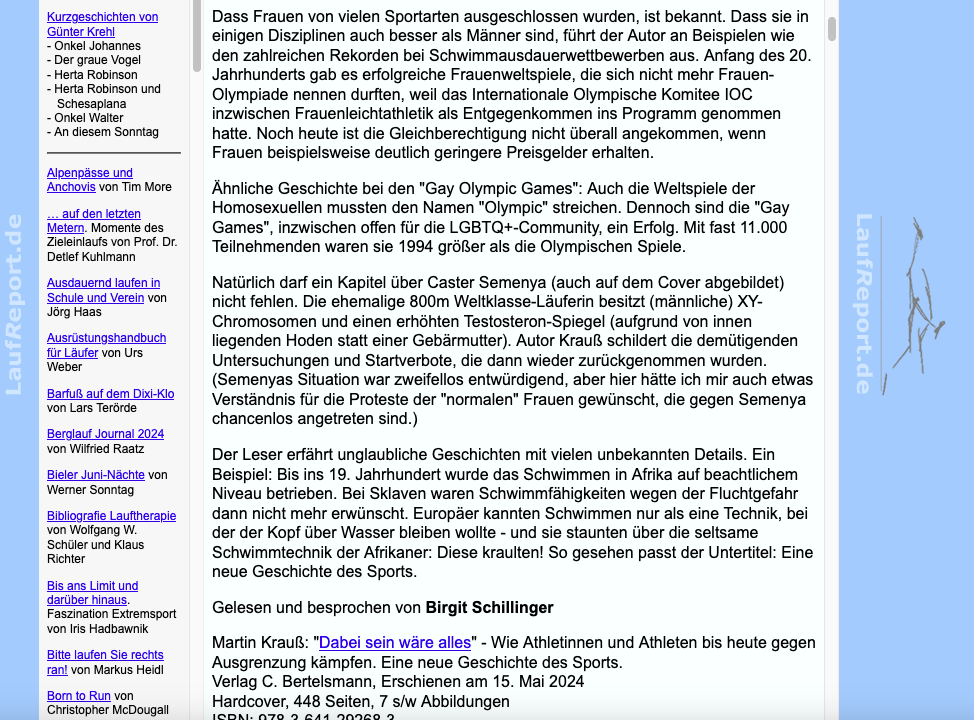 Der LaufReport hat mein Buch rezensiert: „Der Leser erfährt unglaubliche Geschichten mit vielen unbekannten Details.“